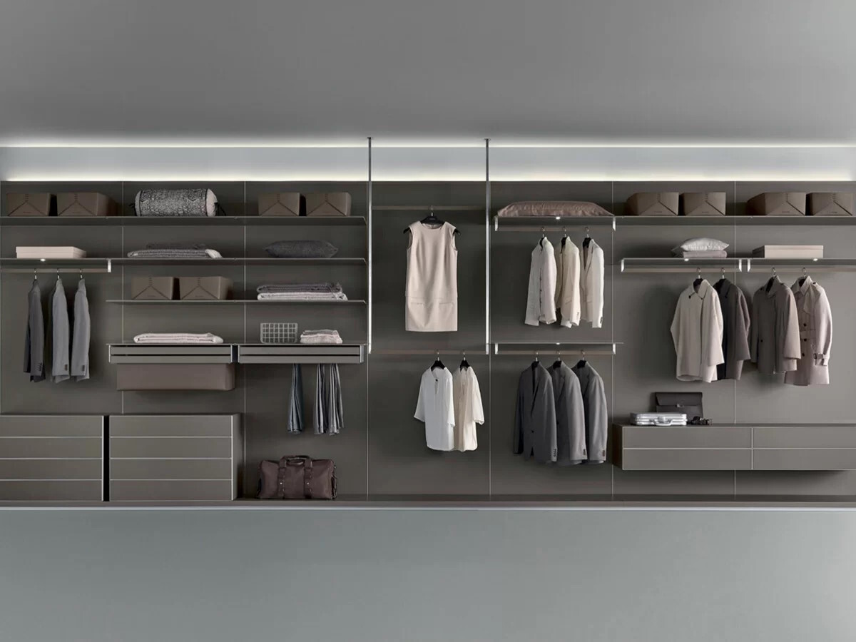 Орні це будуть двері або купе - залежить від габаритів передпокої. Внутрішнє наповнення вбиральні - це полки, штанги, ящики, кошики. Простір заповнюйте максимально від підлоги до стелі. Пам'ятайте, що зайвих полиць не буває.