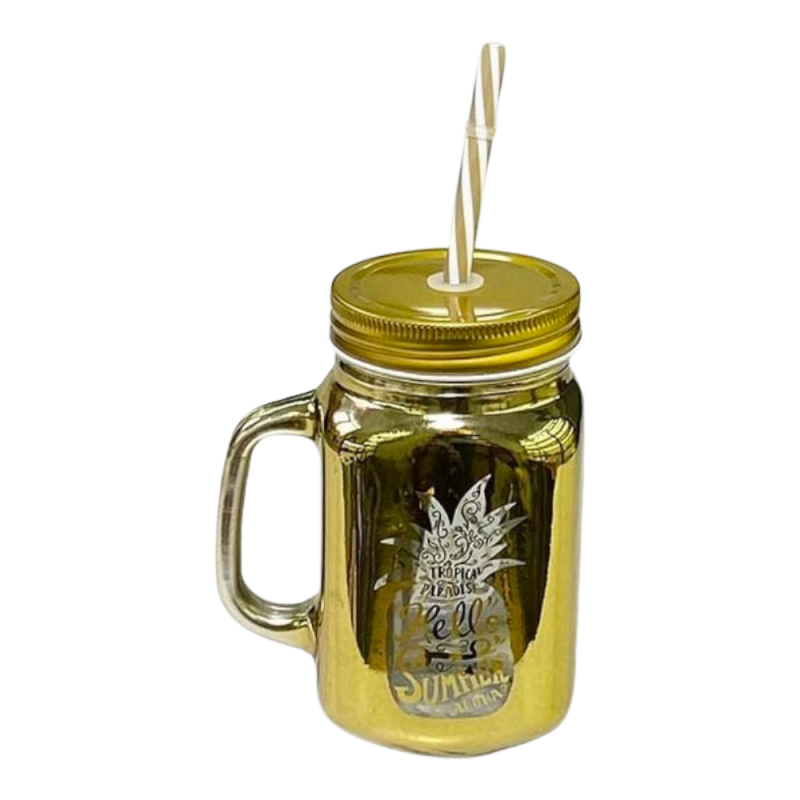 Джар з трубочкою Золотий Ананас, боросилікатне скло, 450 мл