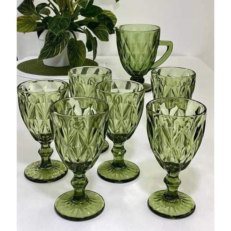 Набір для напоїв Смарагд, скло, 7 предметів, зелений