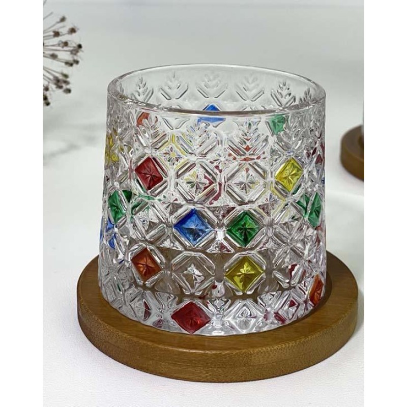 Склянка рокс на бамбуковій підставці Льодяні квіти, скло, 275 мл