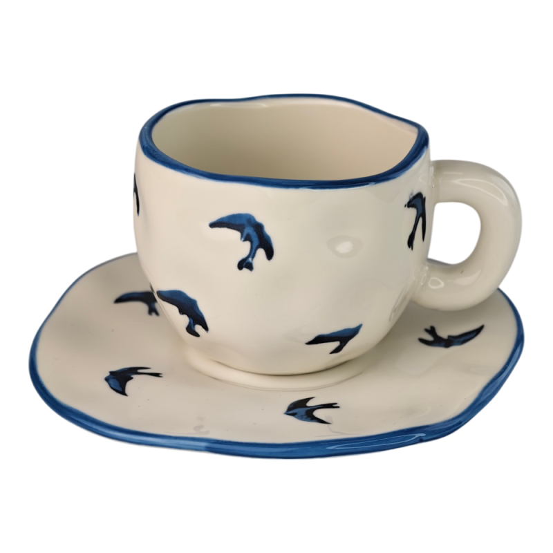 Керамічна чашка з блюдцем Ластівка об’ємом 300 мл створена, щоб дарувати позитивні емоції. Виготовлена з якісної товстостінної кераміки, надійно зберігає тепло, дозволяючи неспішно та повноцінно розкривати смак і аромат вашого напою.