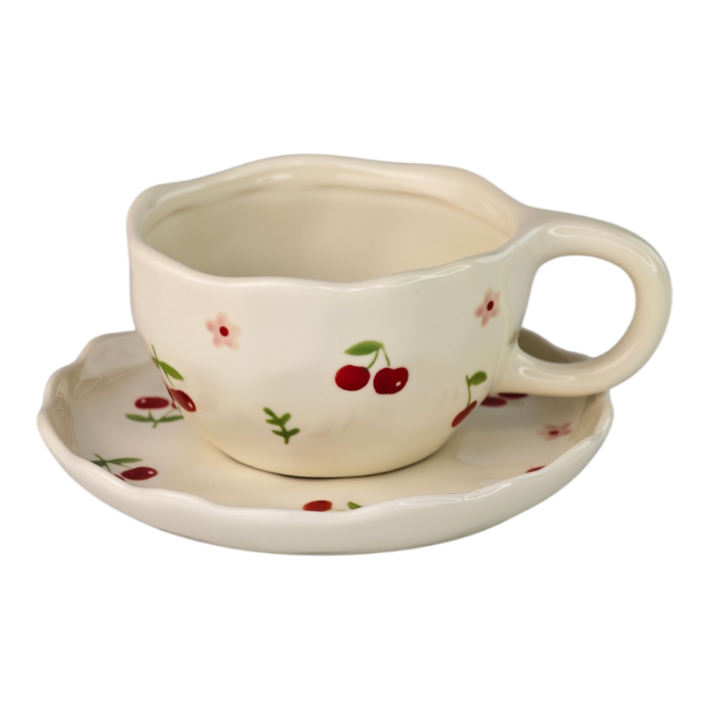 Керамічна чашка з блюдцем Вишнева манія об’ємом 300 мл створена, щоб дарувати позитивні емоції. Виготовлена з якісної товстостінної кераміки, надійно зберігає тепло, дозволяючи неспішно та повноцінно розкривати смак і аромат вашого напою.
