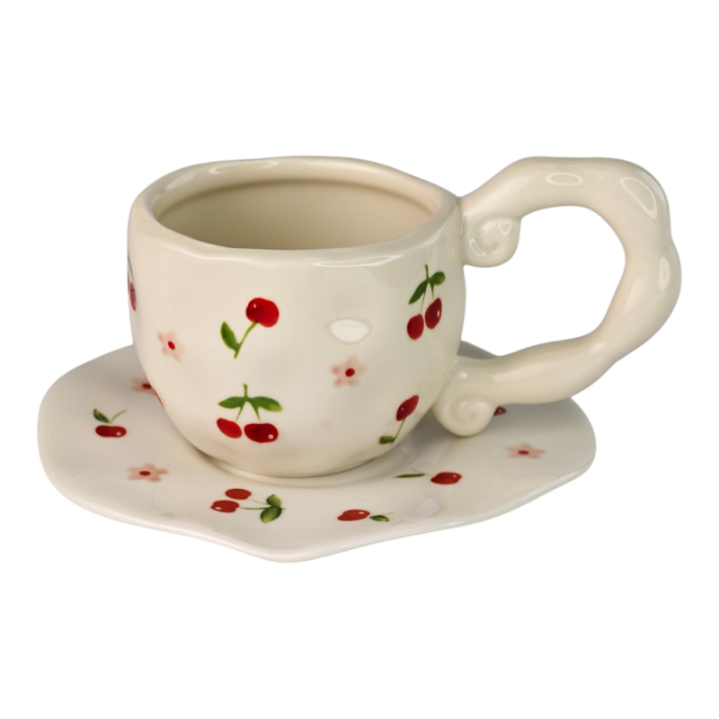 Керамічна чашка з блюдцем "Вишневий сад" об’ємом 300 мл створена, щоб дарувати позитивні емоції. Виготовлена з якісної товстостінної кераміки, надійно зберігає тепло, дозволяючи неспішно та повноцінно розкривати смак і аромат вашого напою.