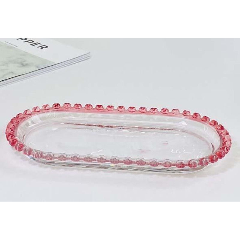 Блюдо овальне Рожеве серце, скло, 24,5х13х2,5 см