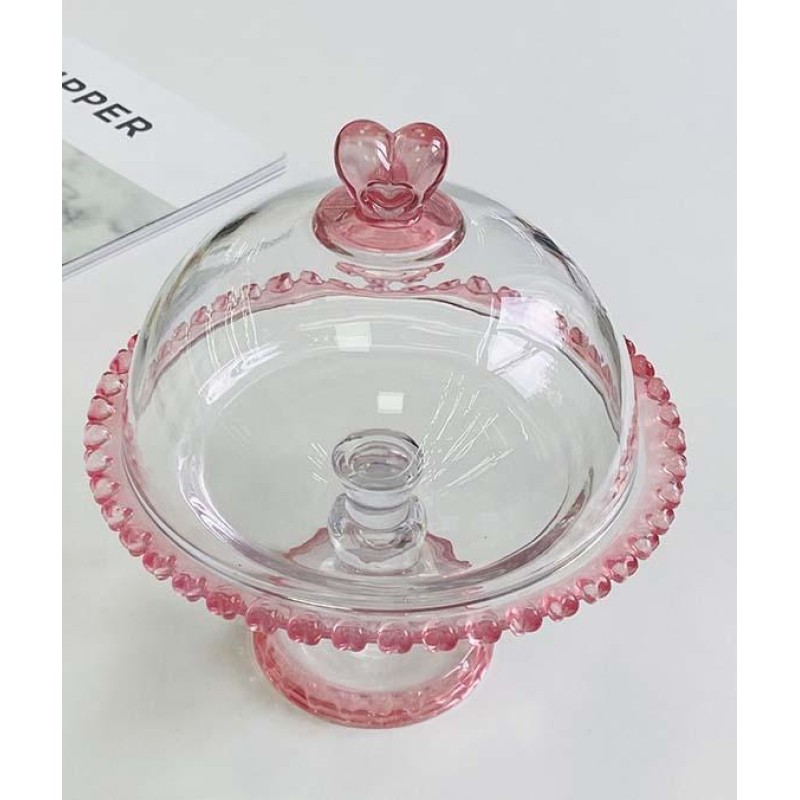 Тортовниця з кришкою Рожеве серце, скло, 19,5 см