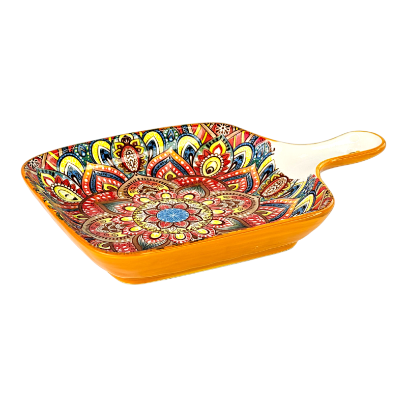 Блюдо з ручкою Мальований жовтий, кераміка, 23х16х3 см