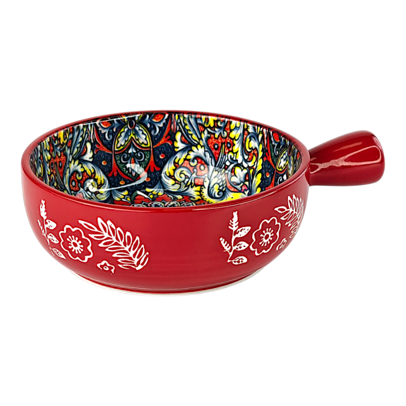 Глибока тарілка з ручкою Мальована, кераміка, 20,5х15,5х6 см, червона